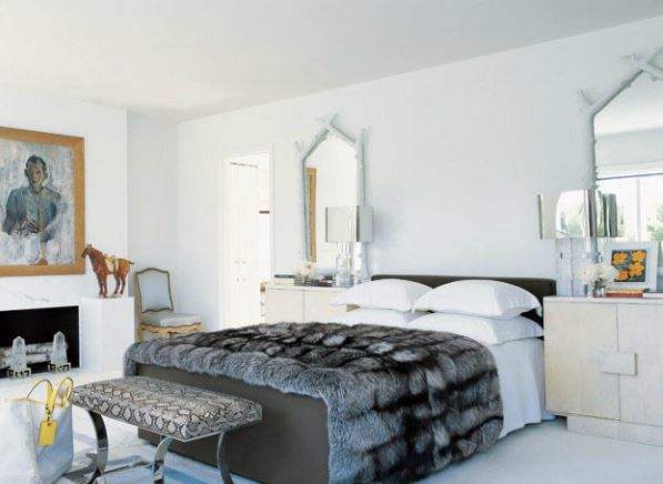 No quarto as peles brancas podem ser vistas roubando a cena no pé da cama em forma de passadeiras, ou fazendo parte de uma composição de almofadas colocando a cama em destaque.