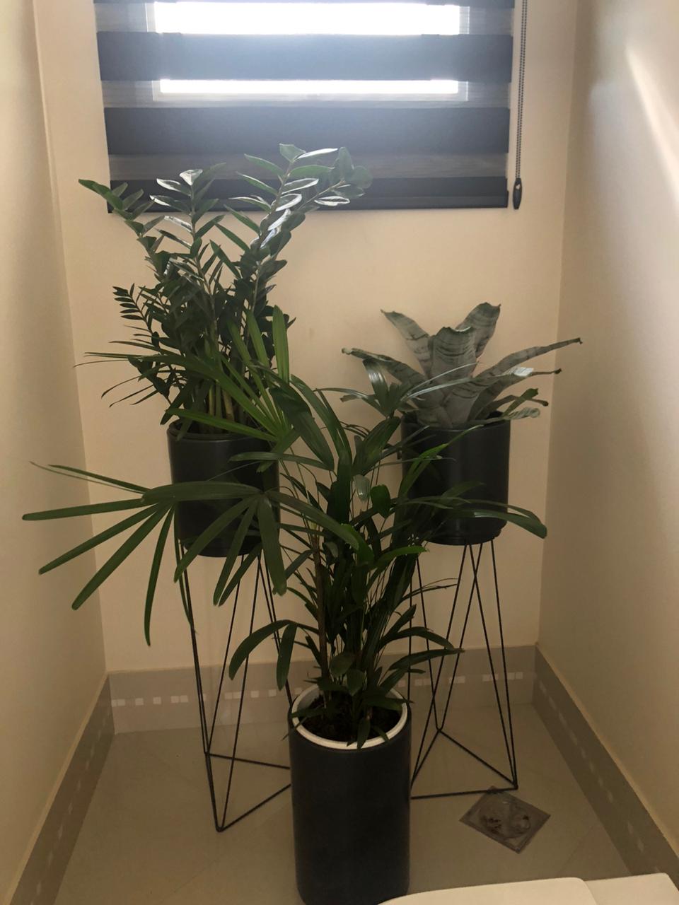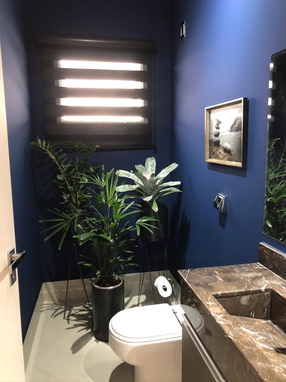 Foram utilizados vasos de chão no lavabo, já que o espaço permitia, criando uma espécie de jardim e trazendo um toque de natureza pra dentro do ambiente!” contou nossa Archie Camila.