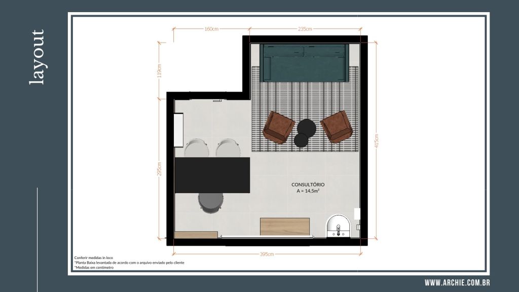 Nosso cliente havia alugado um imóvel para utilizar como seu consultório, e queria deixar o ambiente mais bacana sem fazer grandes interferências no local, afinal, em se tratando de um imóvel alugado, o quanto menos intervir no espaço melhor!