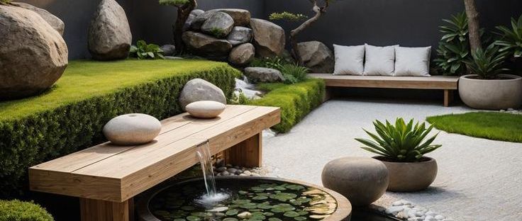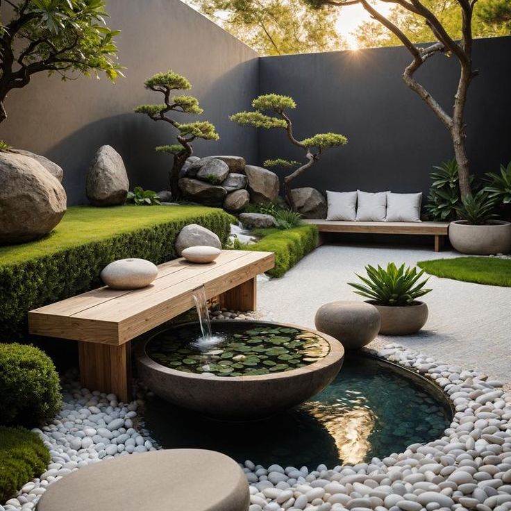 Instale um pequeno lago, fonte ou cascata para trazer a presença relaxante da água.