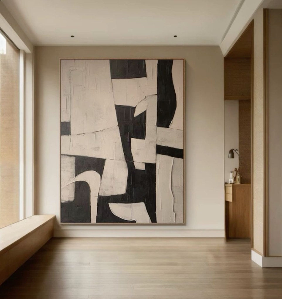 • Equilíbrio de Texturas: Combine quadros e esculturas abstratas com móveis e materiais variados, como madeira, vidro ou metal. Isso cria um equilíbrio entre as texturas e realça as características de cada peça.