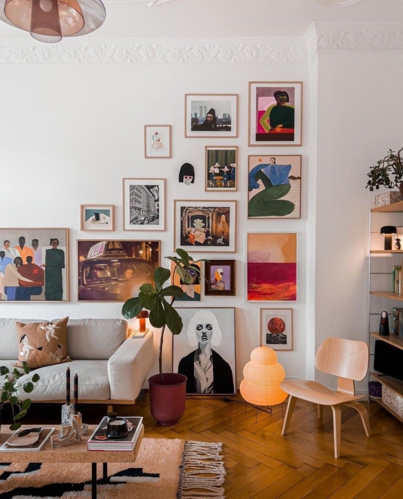 • Crie Galerias de Arte: Uma galeria de parede é ideal para quem quer combinar várias peças abstratas menores. Opte por molduras de estilos e tamanhos variados para dar um ar moderno e dinâmico à composição. Posicione as peças de forma simétrica ou experimente criar uma disposição livre, mas planejada.