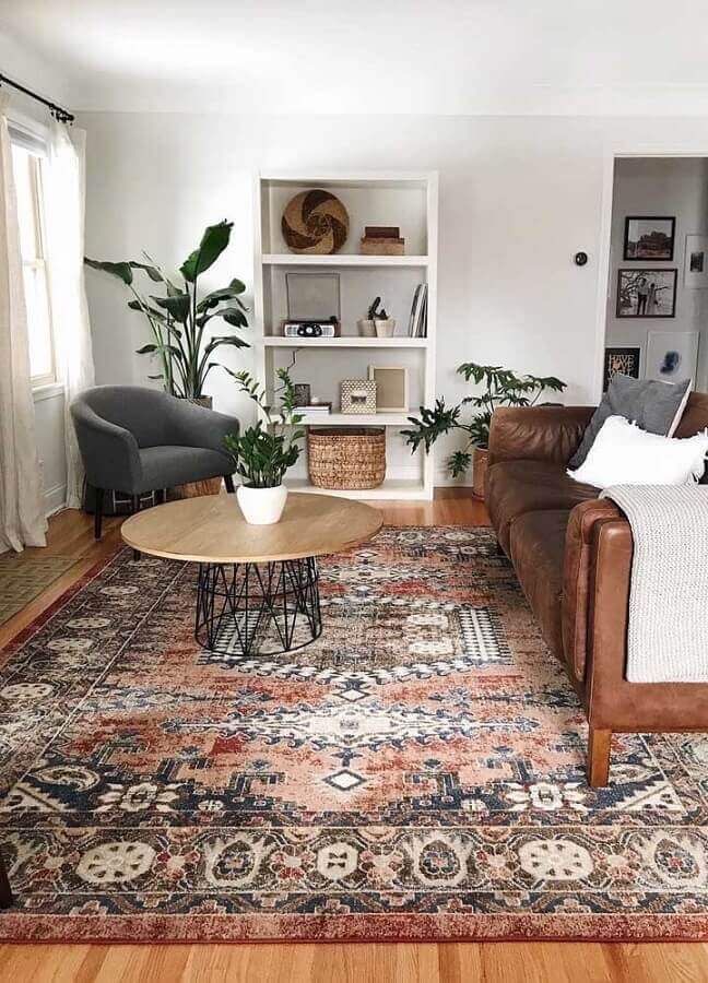 • Decoração boho ou rústica: Aposte em tapetes de fibras naturais, padrões tribais ou peças com aparência artesanal.