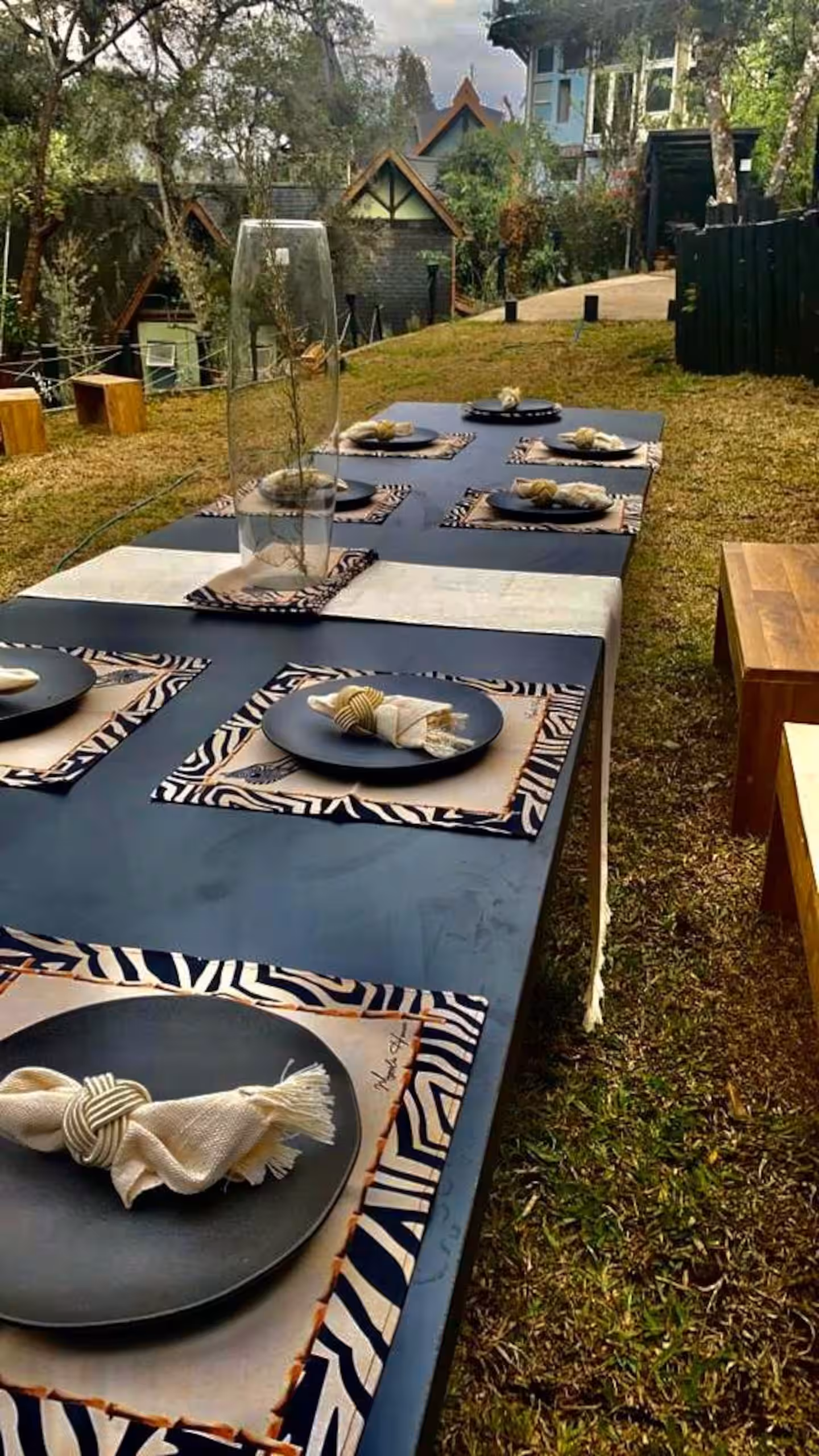 Ambas as casas contam com lareiras, banheiras com vista para a mata, cozinhas equipadas e churrasqueiras artesanais de alto padrão, como kamado e parrilla argentina, para experiências gastronômicas completas.