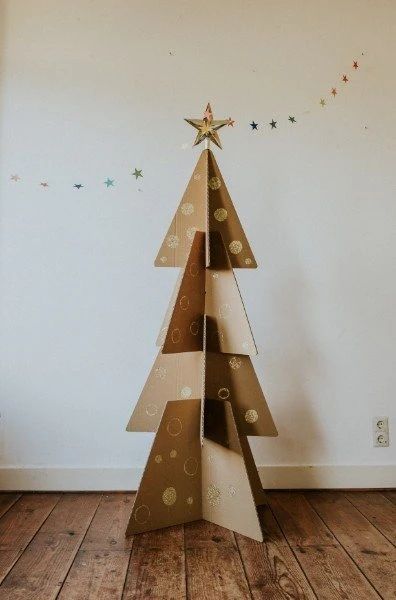 Monte cones de isopor ou papelão e decore com retalhos, fitas, botões, laços e pequenas luzes.